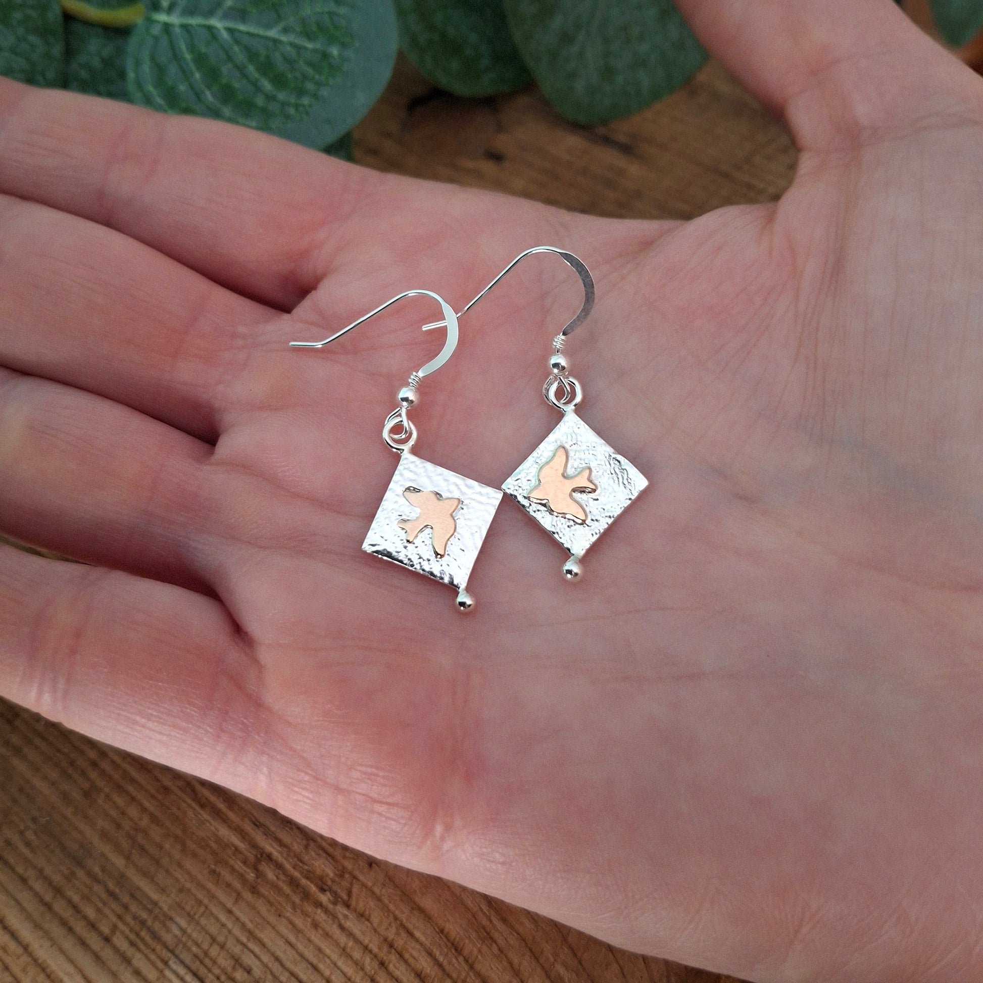 One of the gold birds has unfortunately sunk into the silver in the soldering process and doesn't look as neat and aligned as the other one, which is why I'm offering these earrings as seconds to a slightly reduced price.