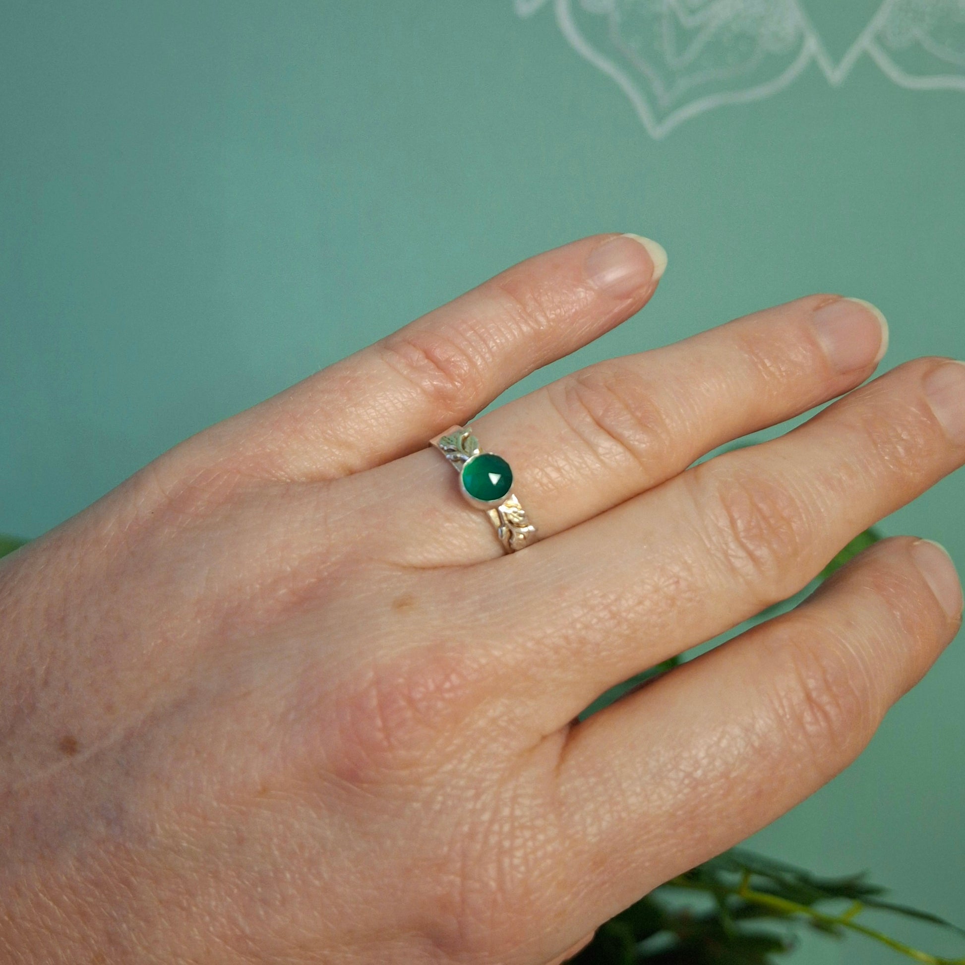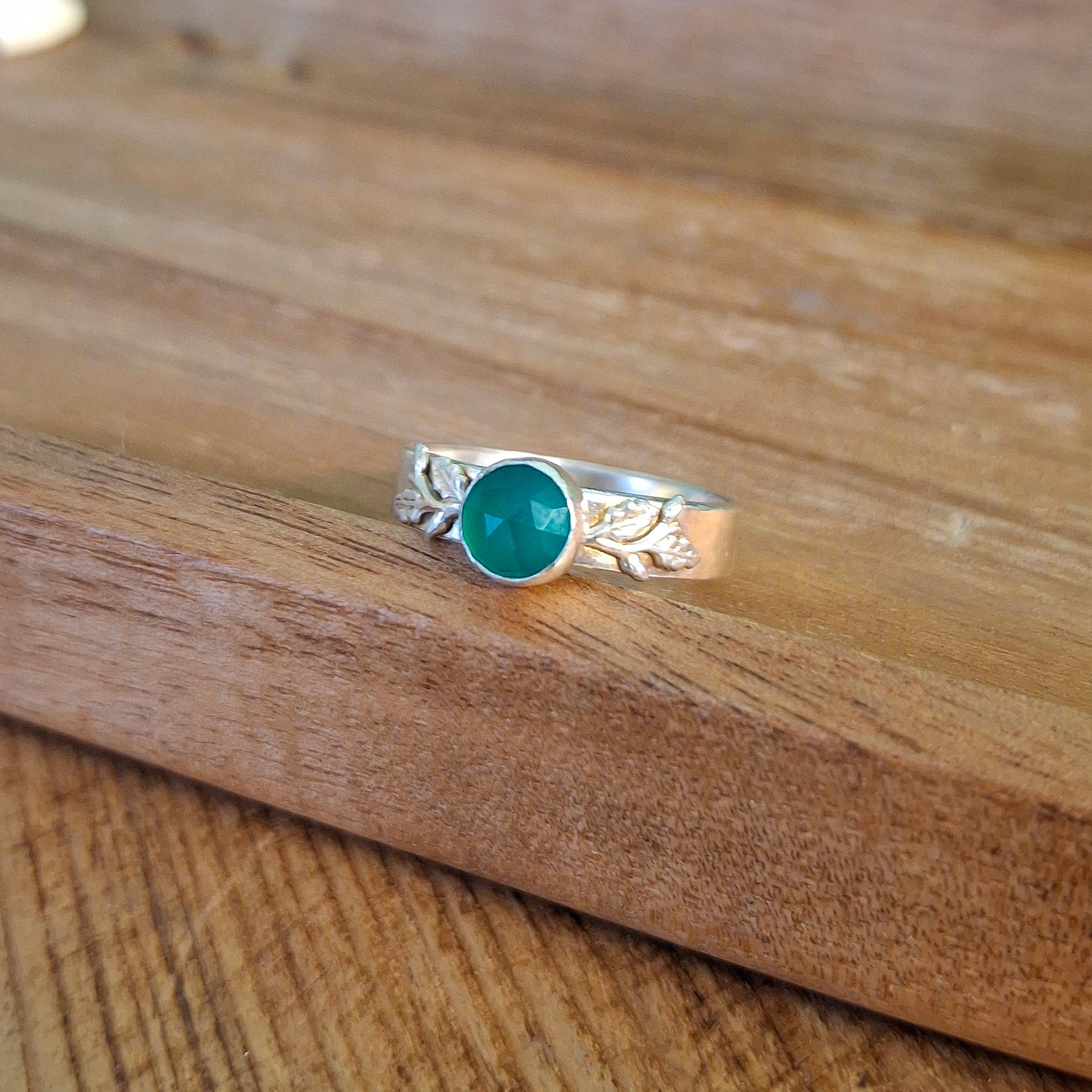 Handmade Oak Leaf & Acorn Green Onyx Ring, Nature Inspired Jewellery