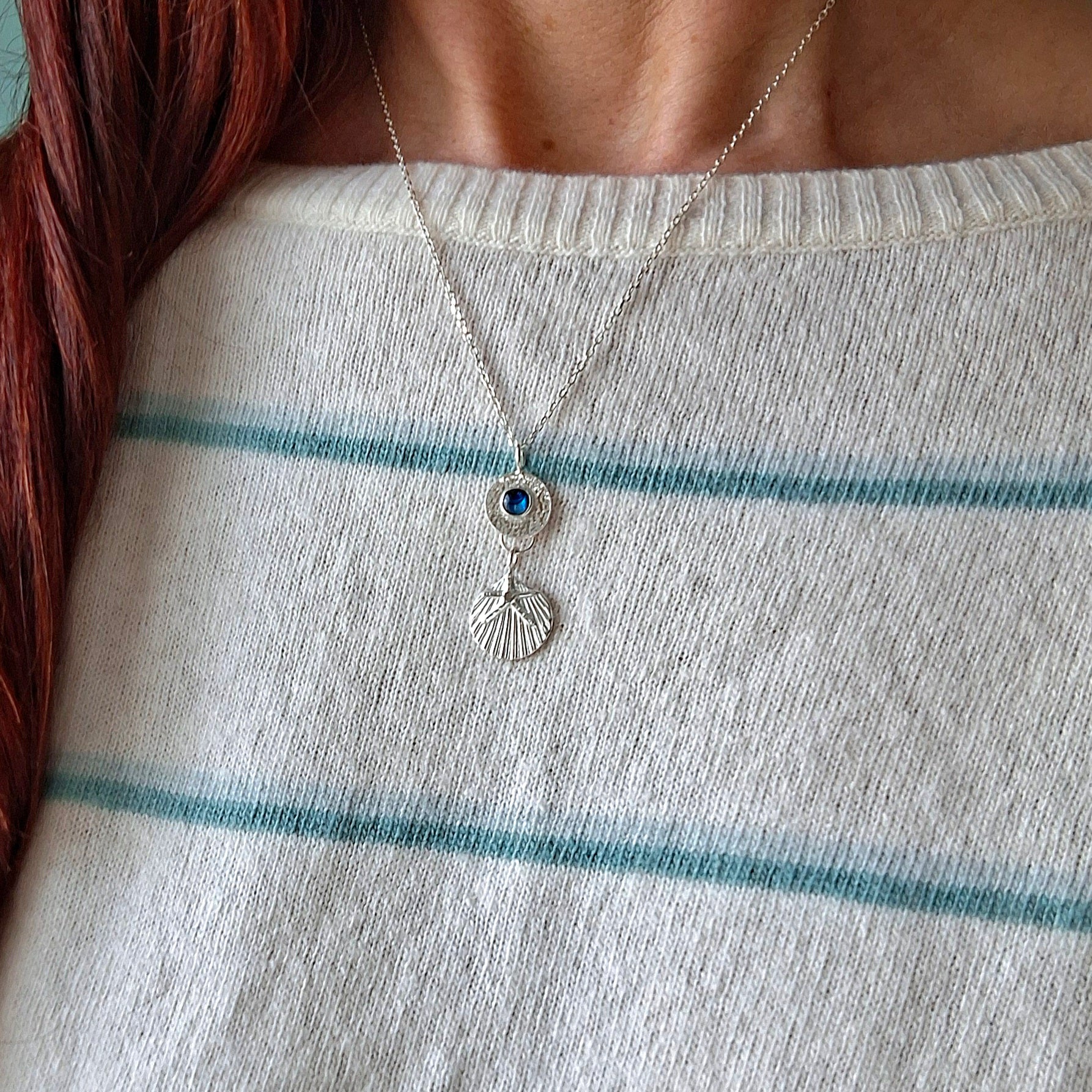 Handmade Silver Seaside Pendant with Shell, Starfish & Blue Paua