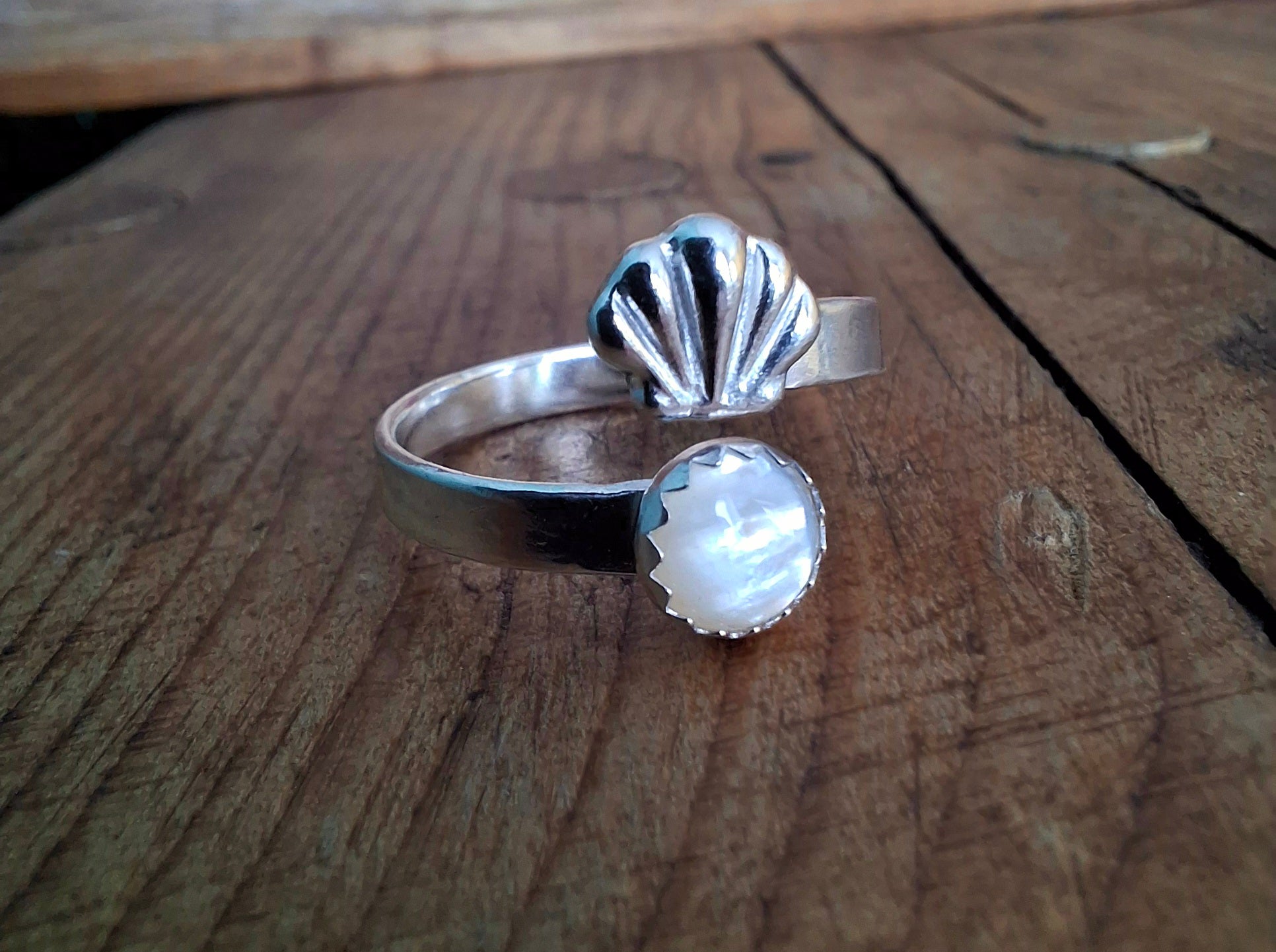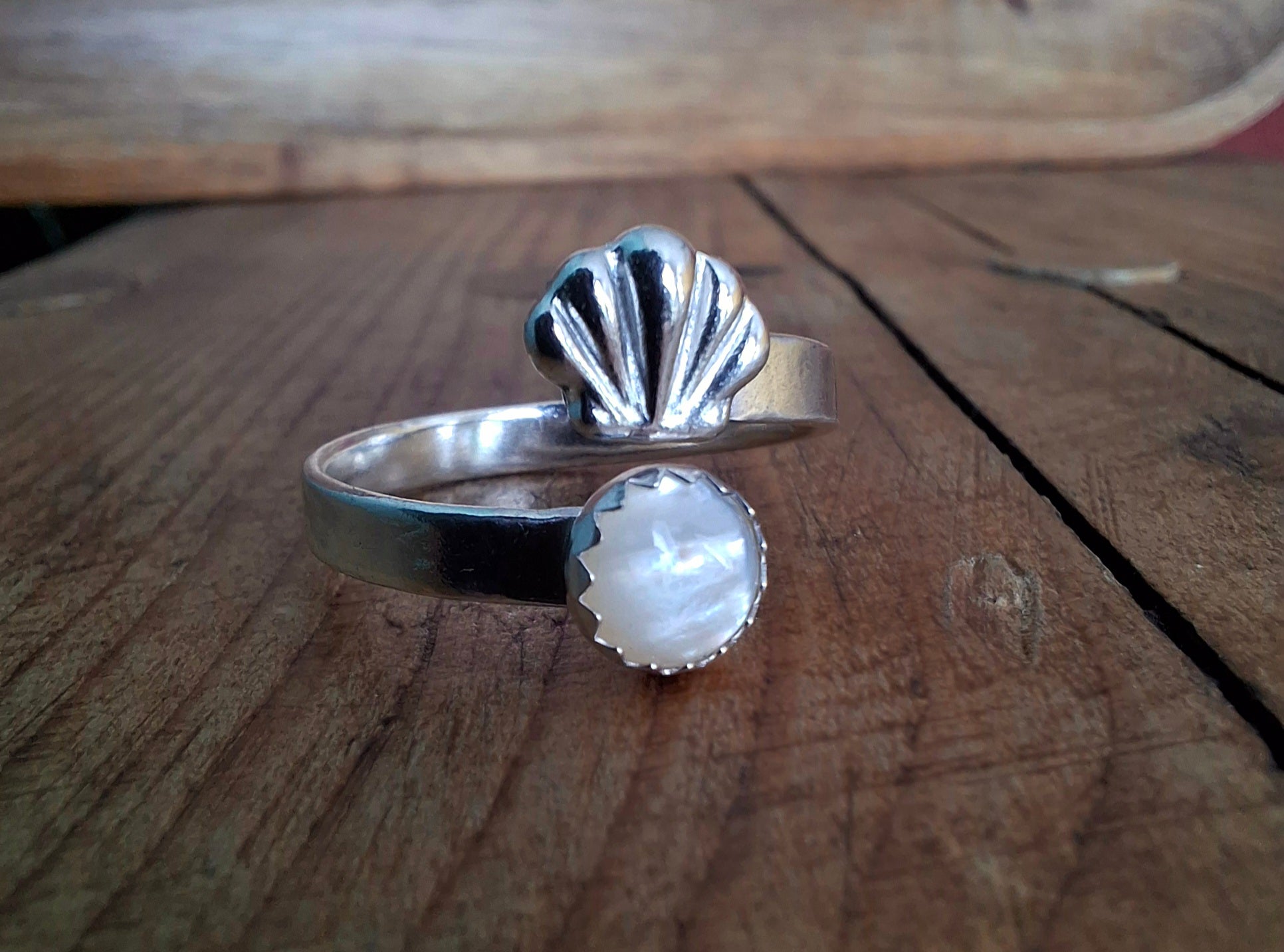 💚 A cute little silver shell with an ivory shimmering Mother of Pearl stone.