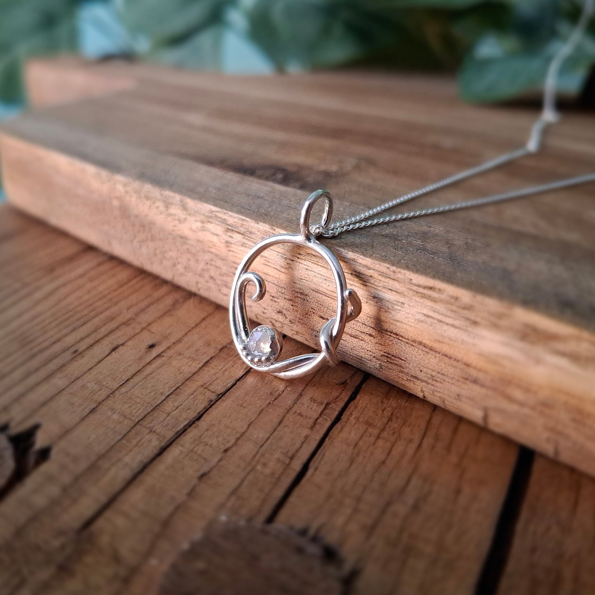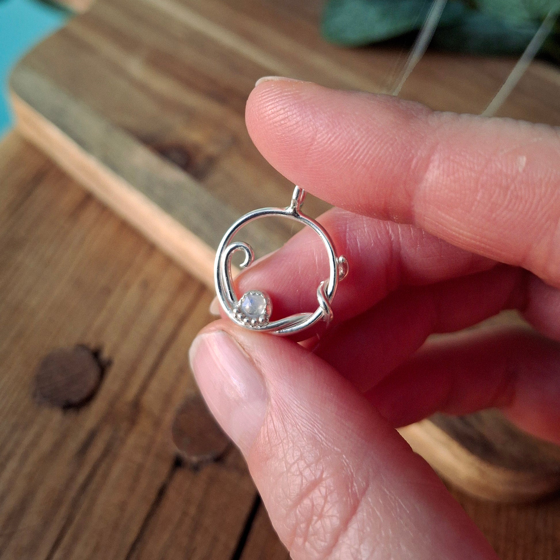 Handmade Silver Swirl Necklace with Moonstone