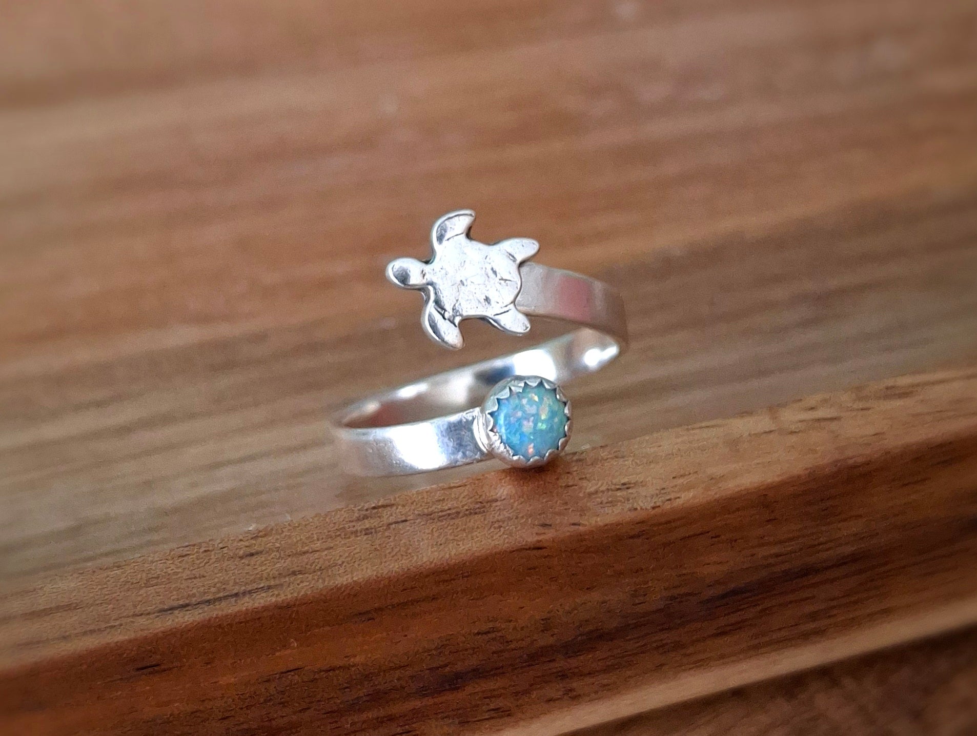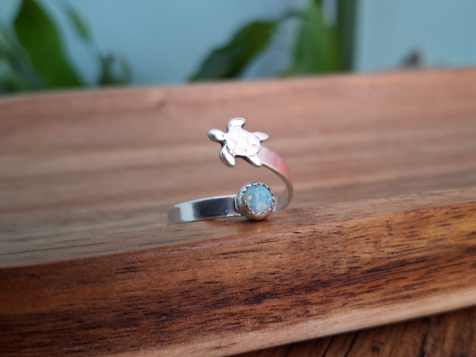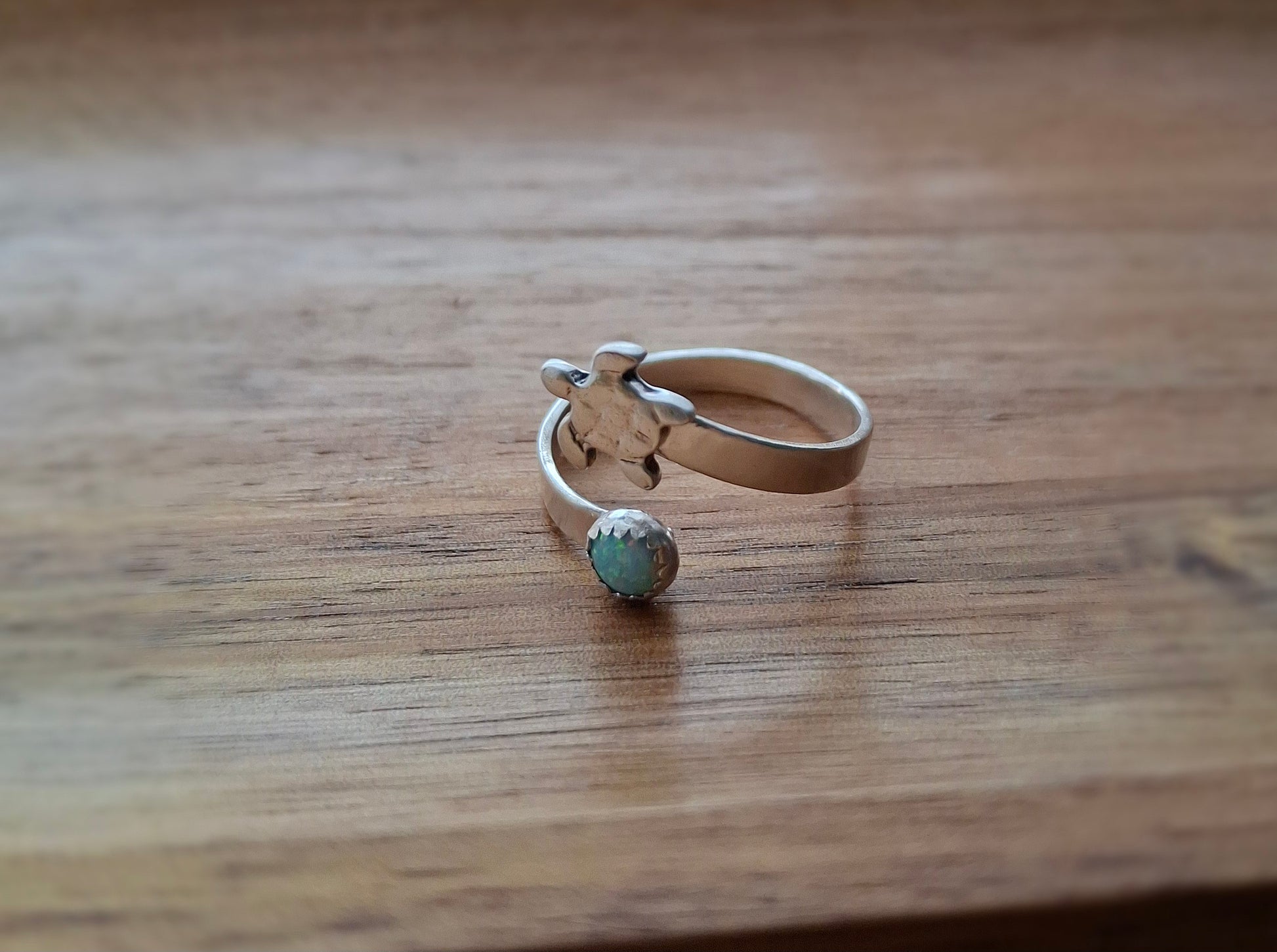 Handmade Silver Turtle & Opal Ring