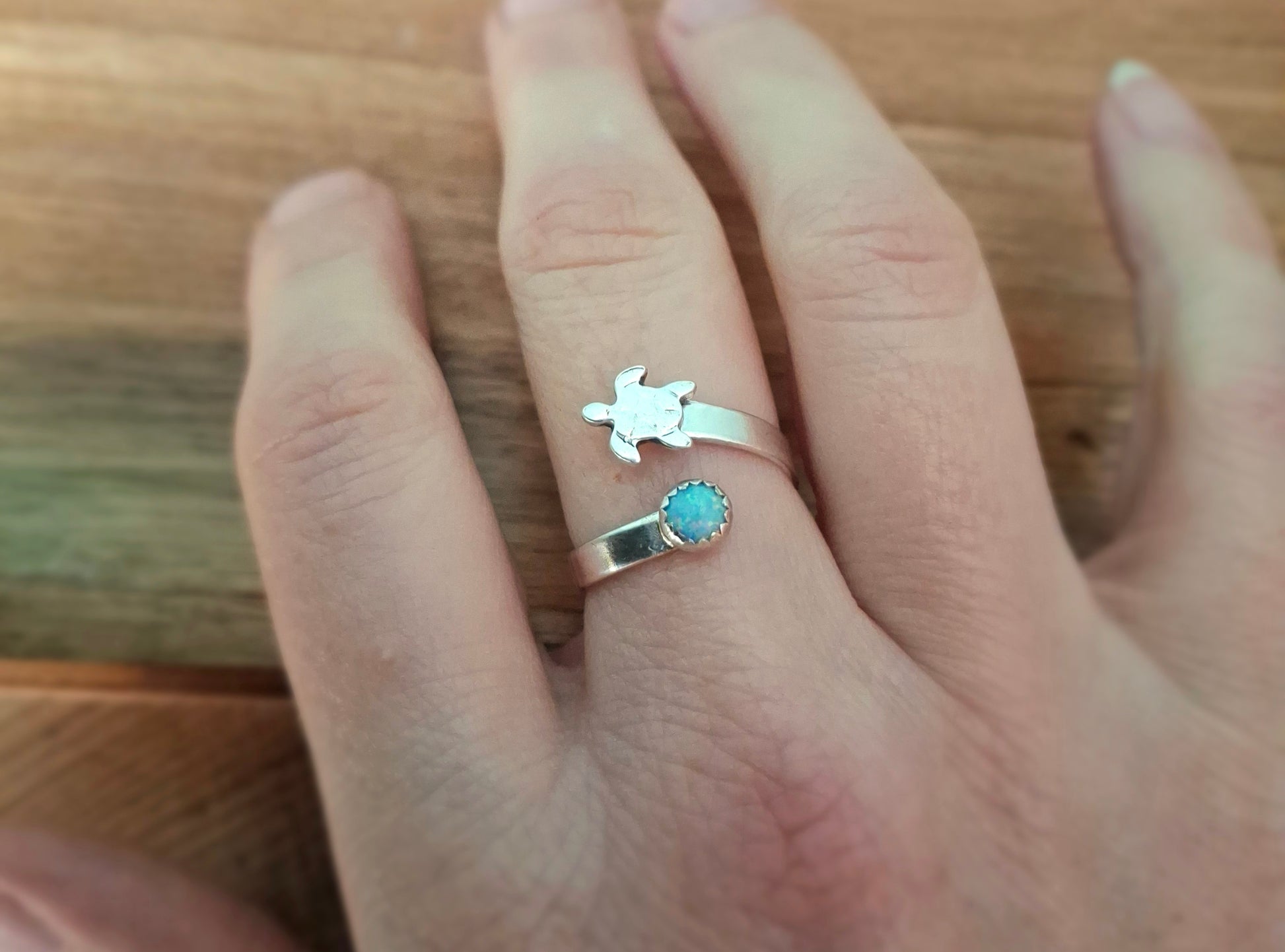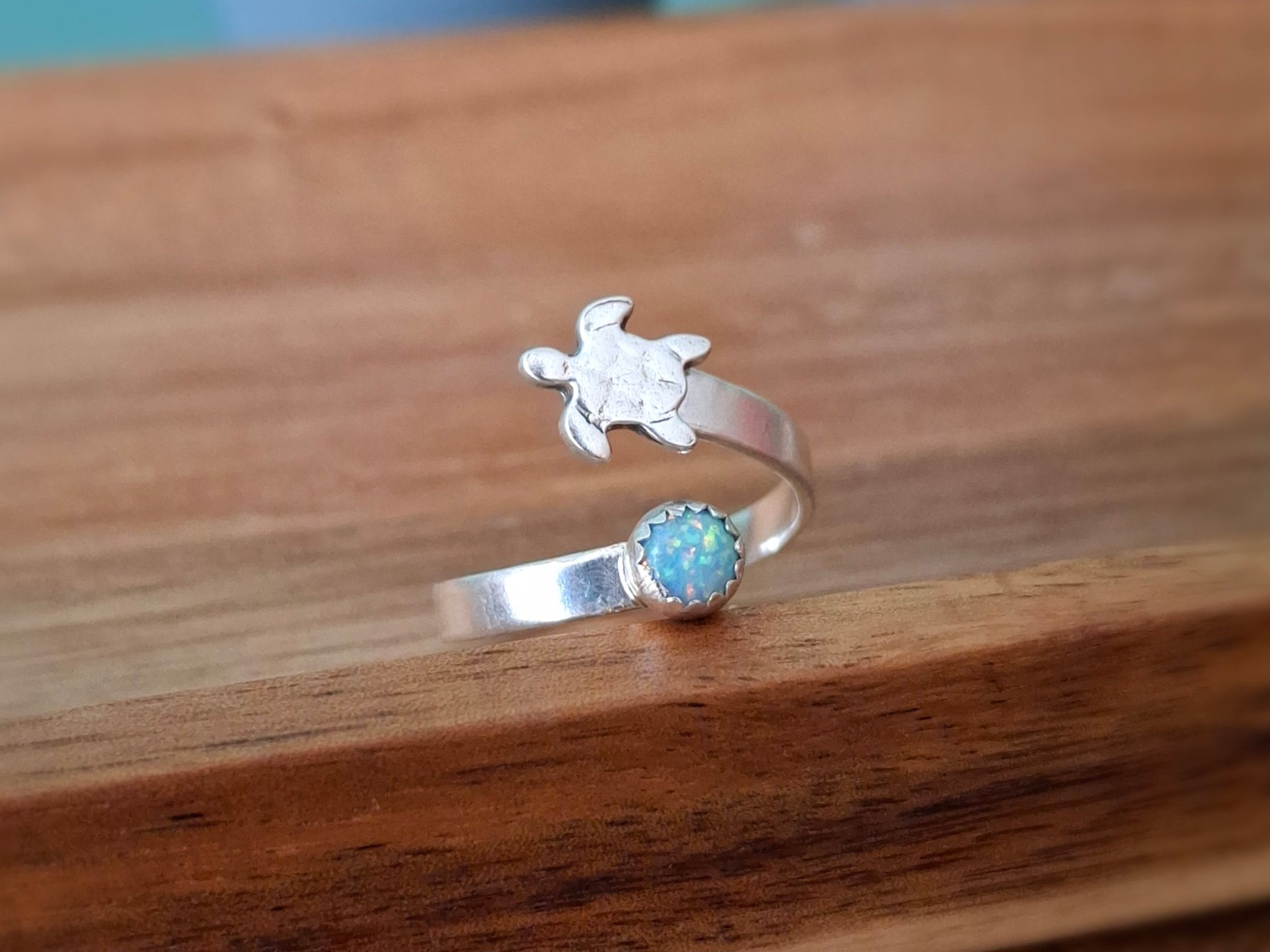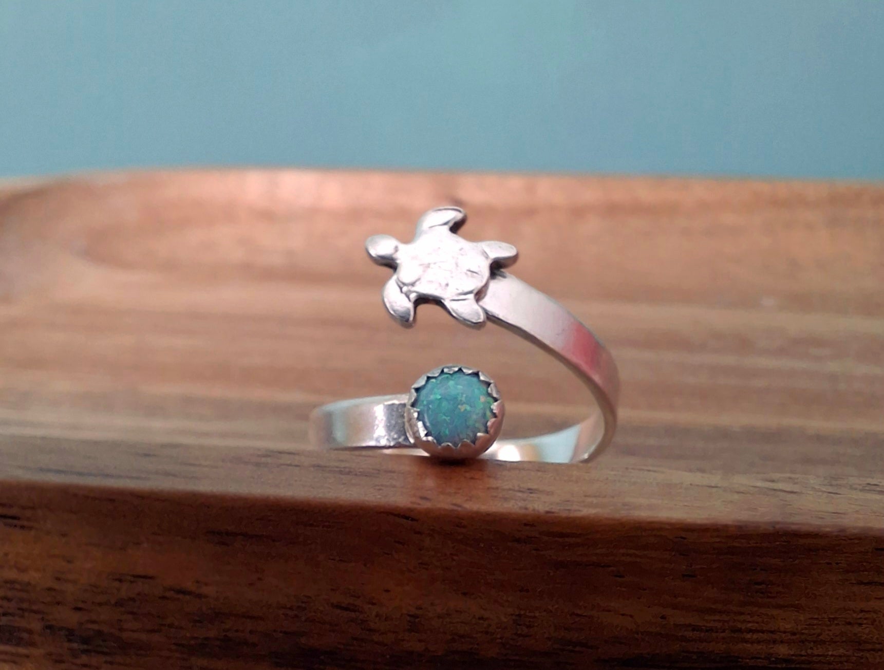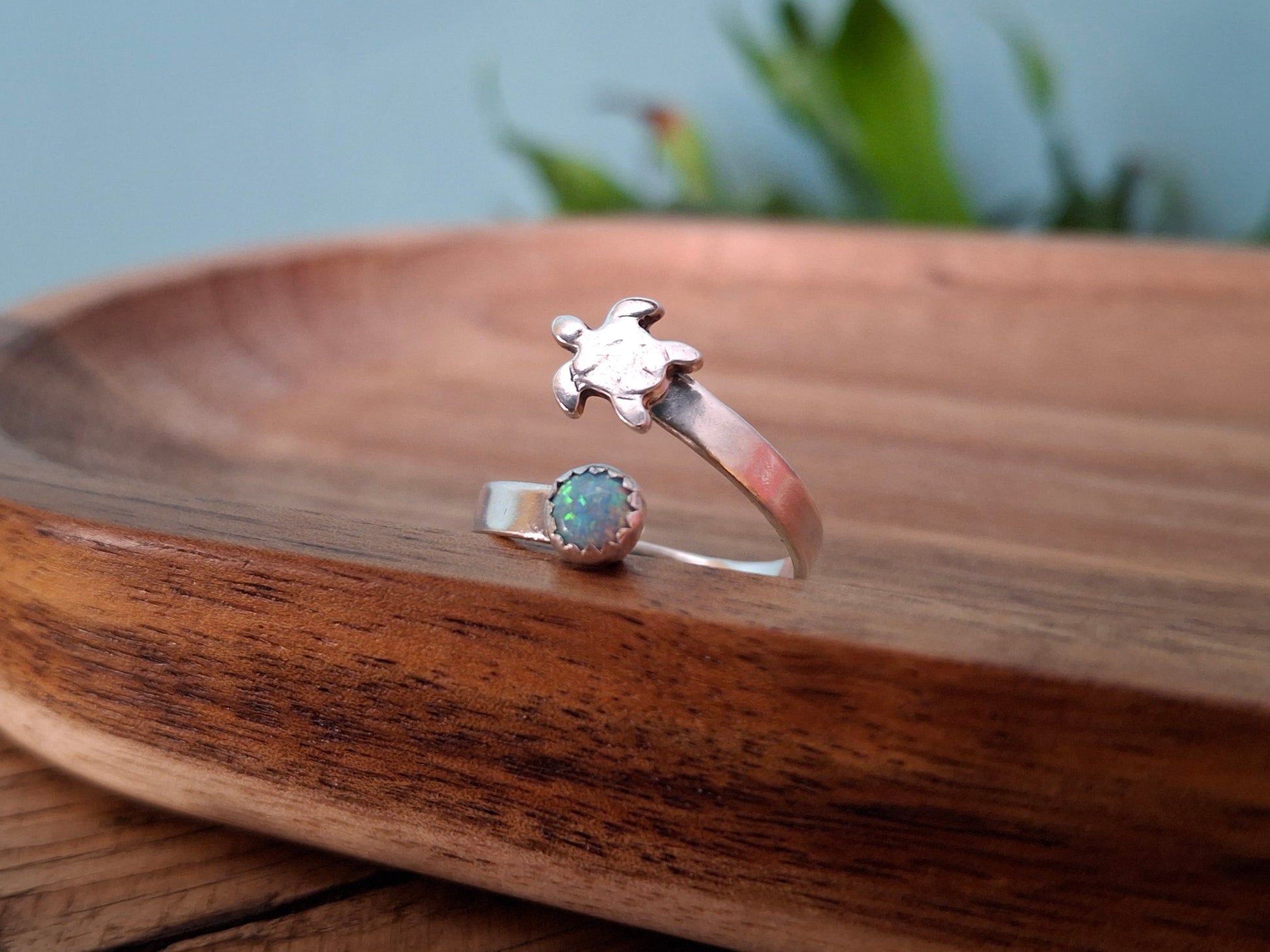 Handmade Silver Turtle & Opal Ring