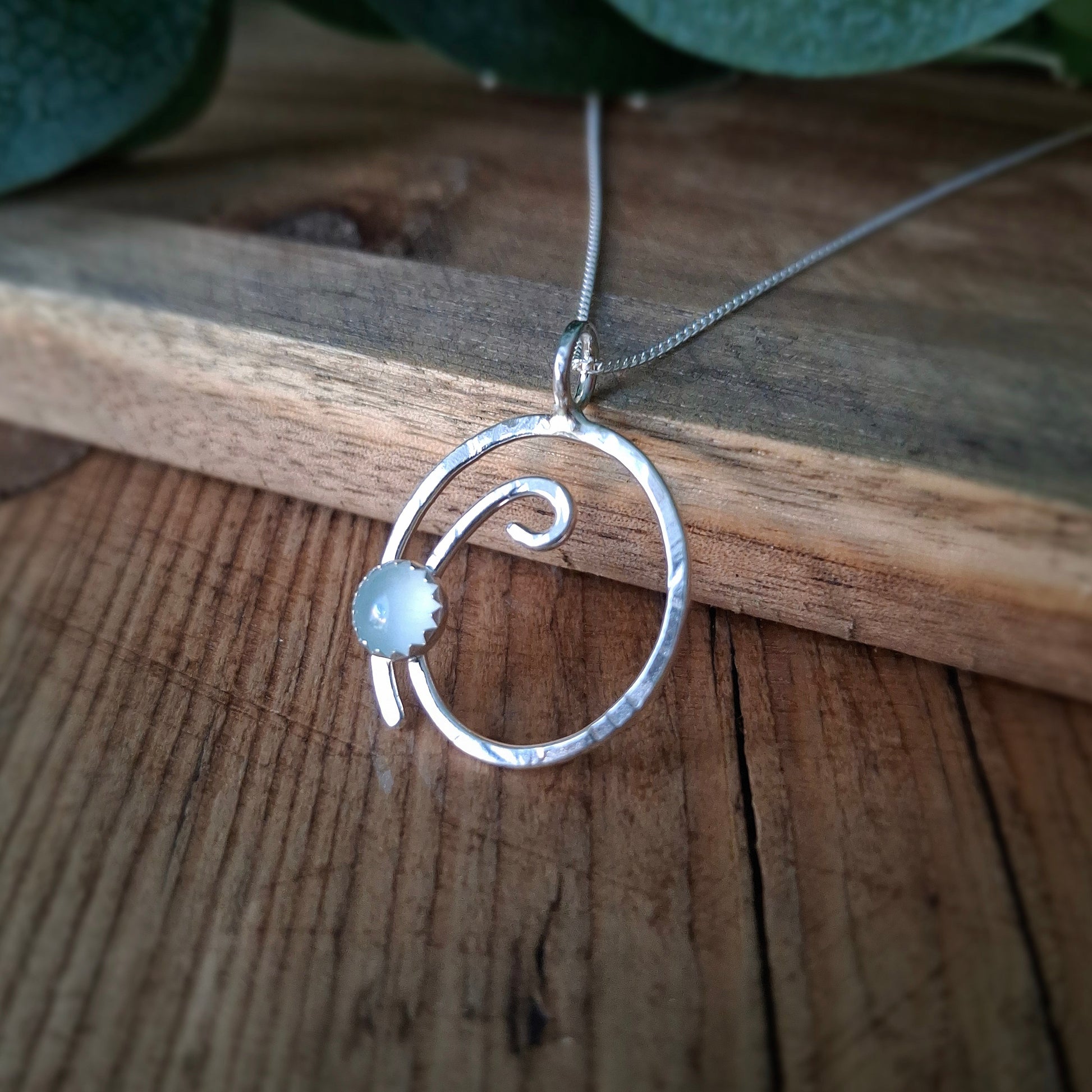 This aquamarine wave pendant reminds me of a frosty and calm day at the beach, even though it is a perfect companion for every season.