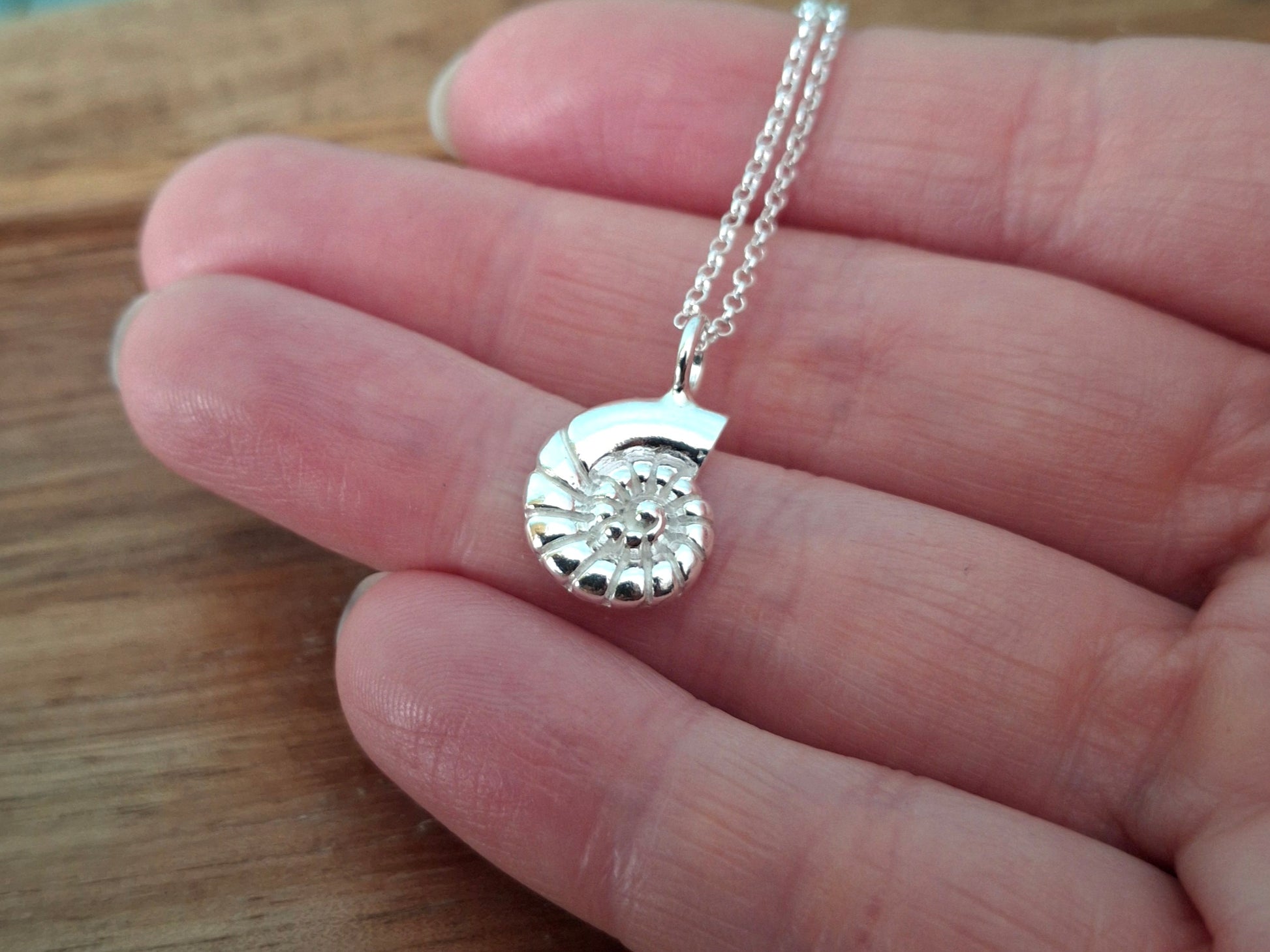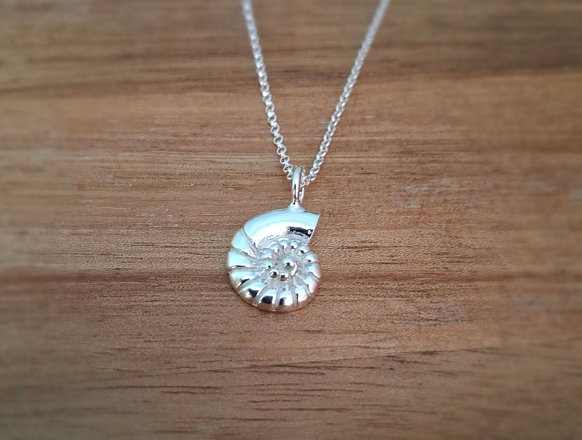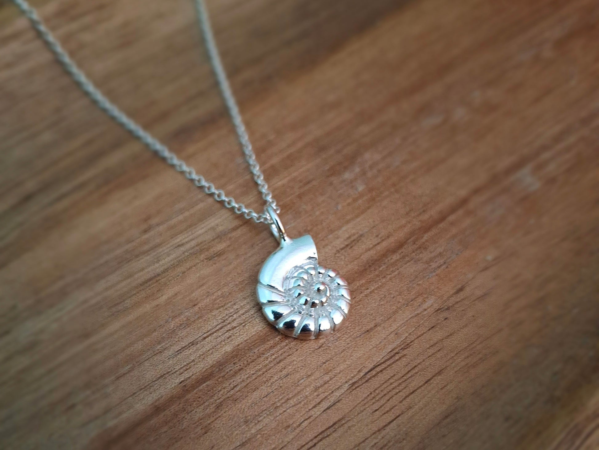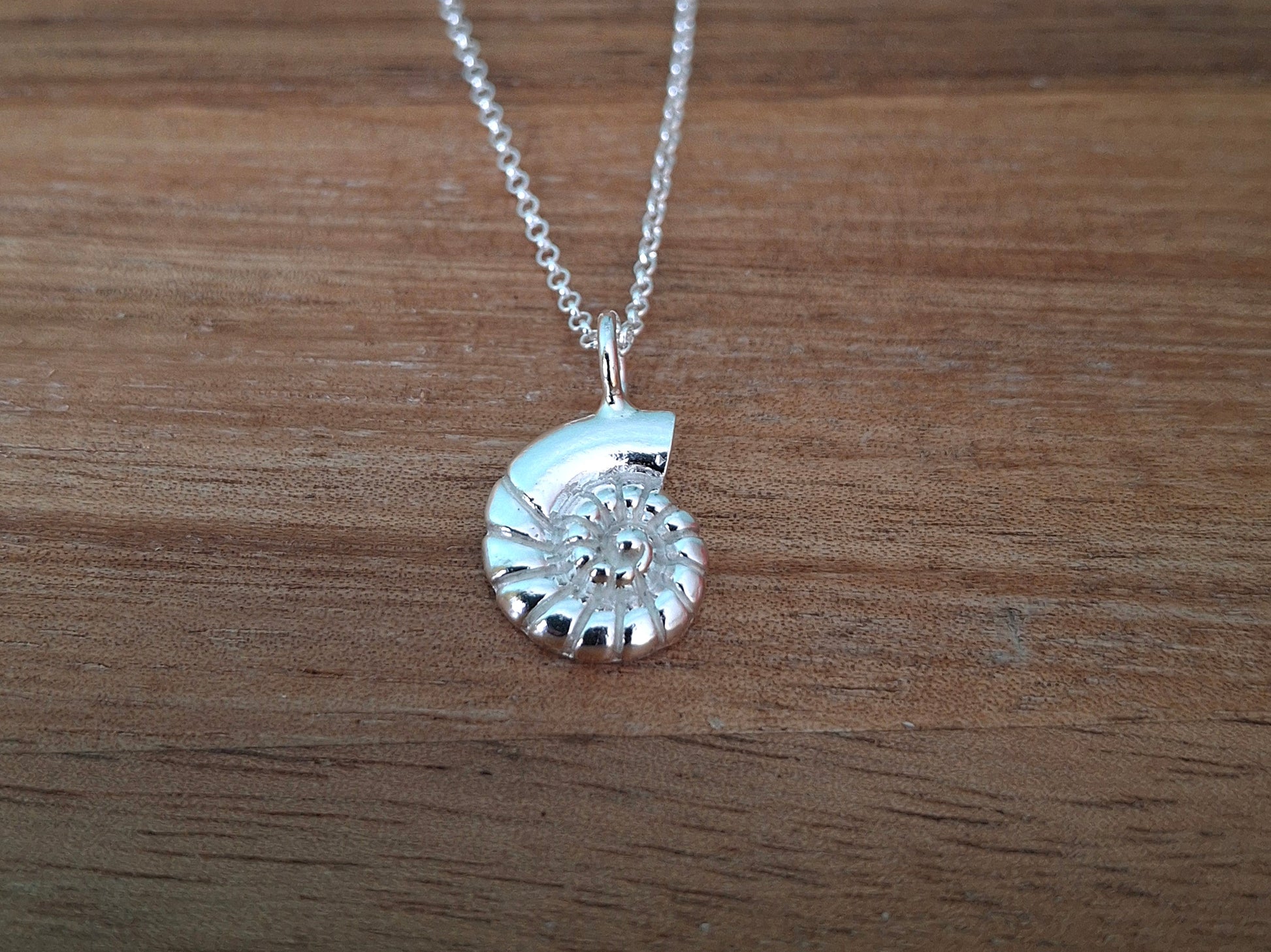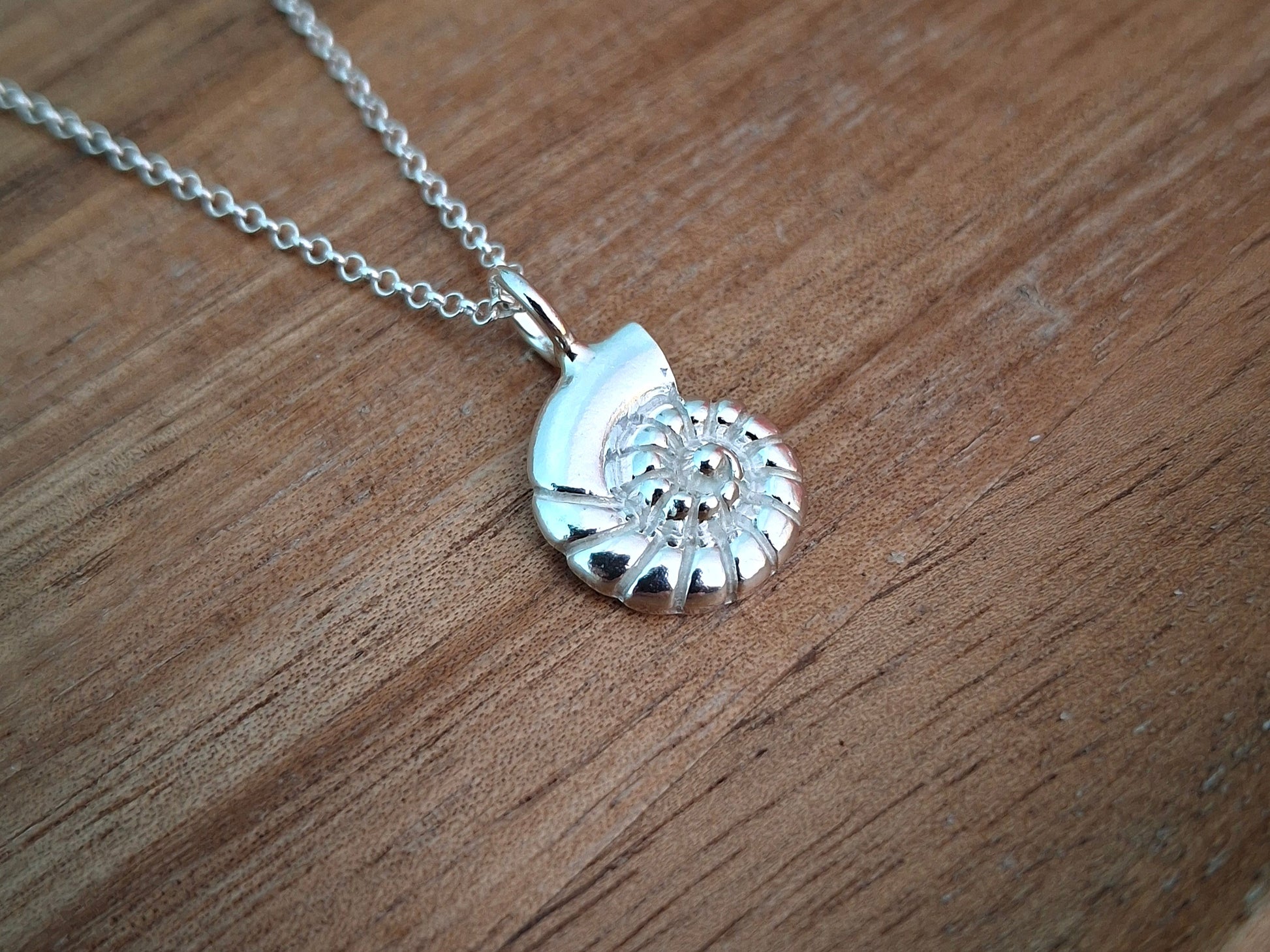 Silver Fossil Ammonite Shell Charm Necklace