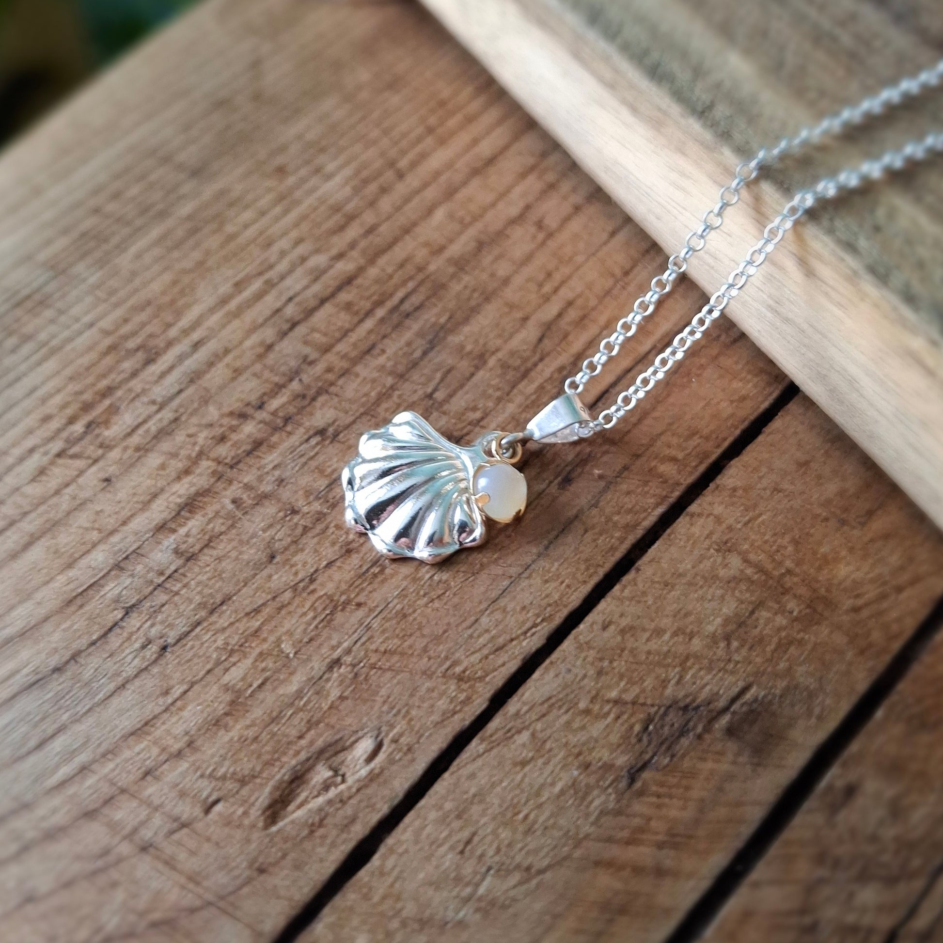 Silver Shell Charm Necklace with Gold details and Mother of Pearl