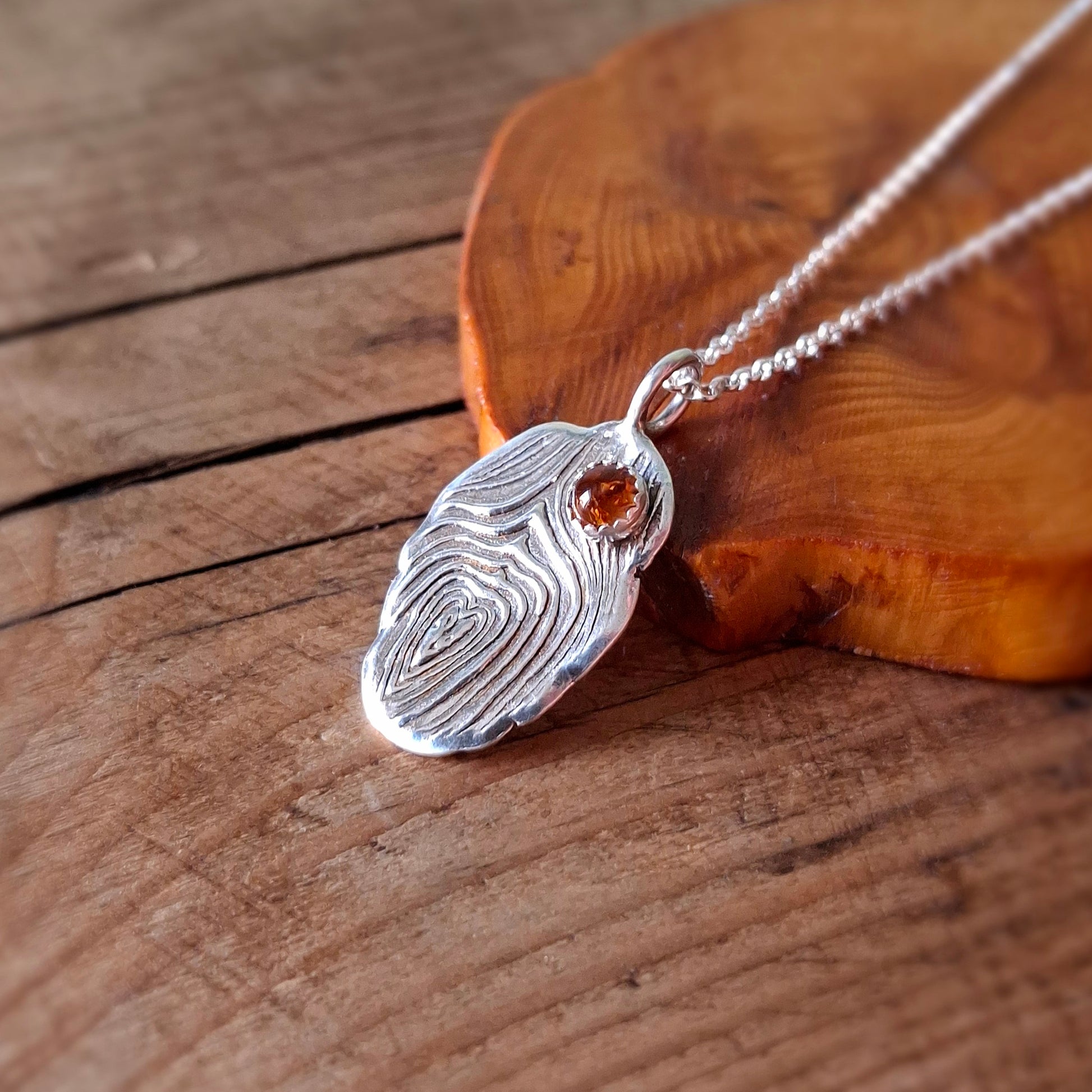 Silver Tree Bark Heart and Amber Handmade Necklace
