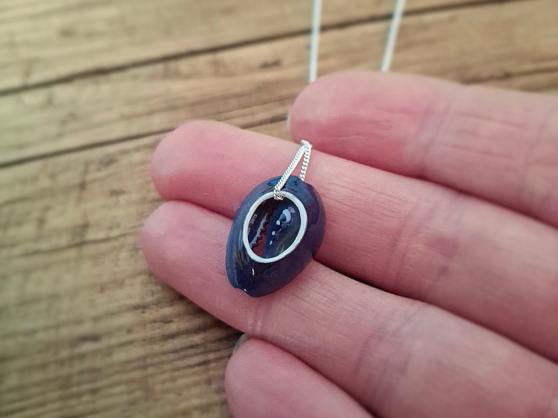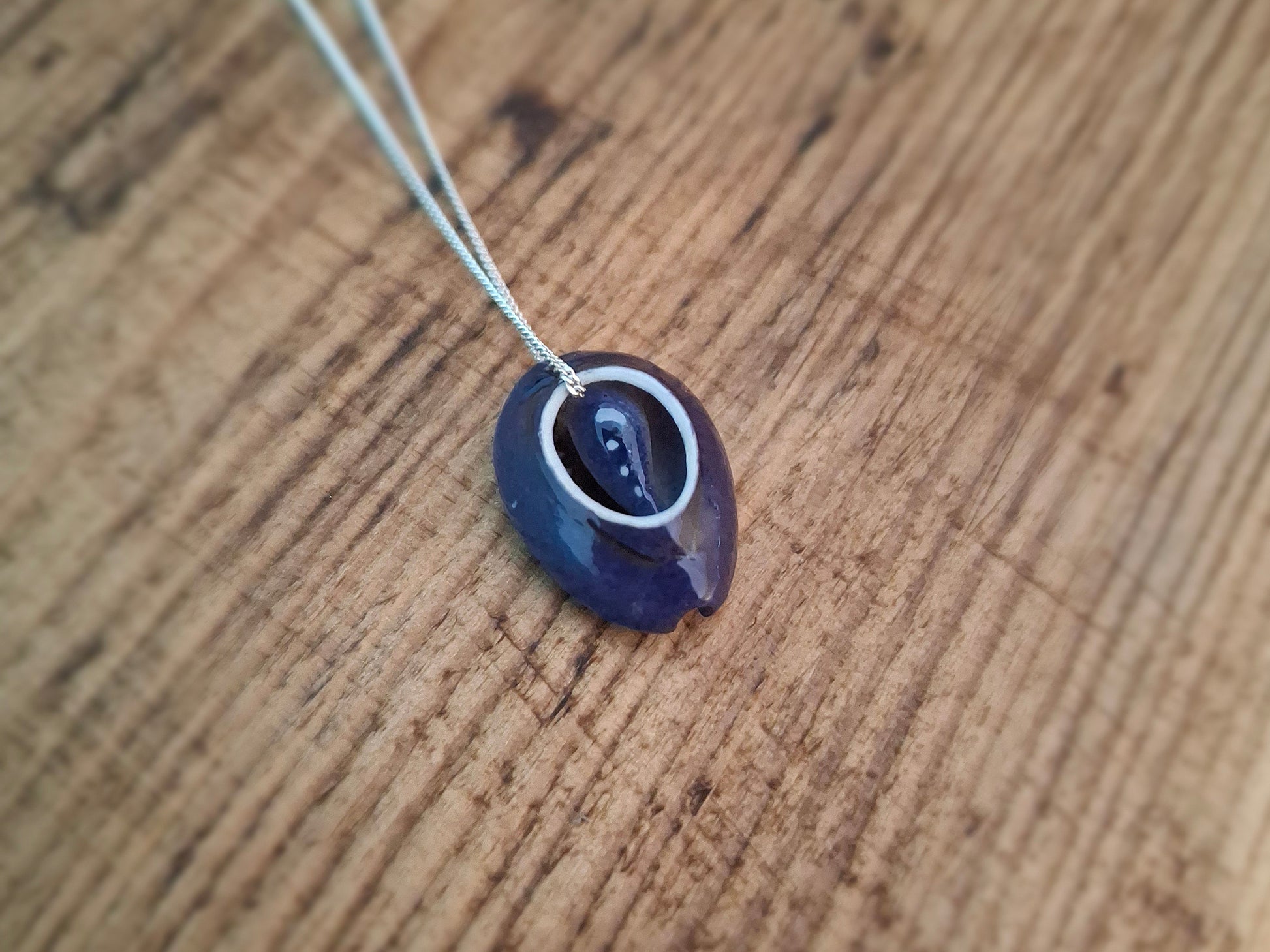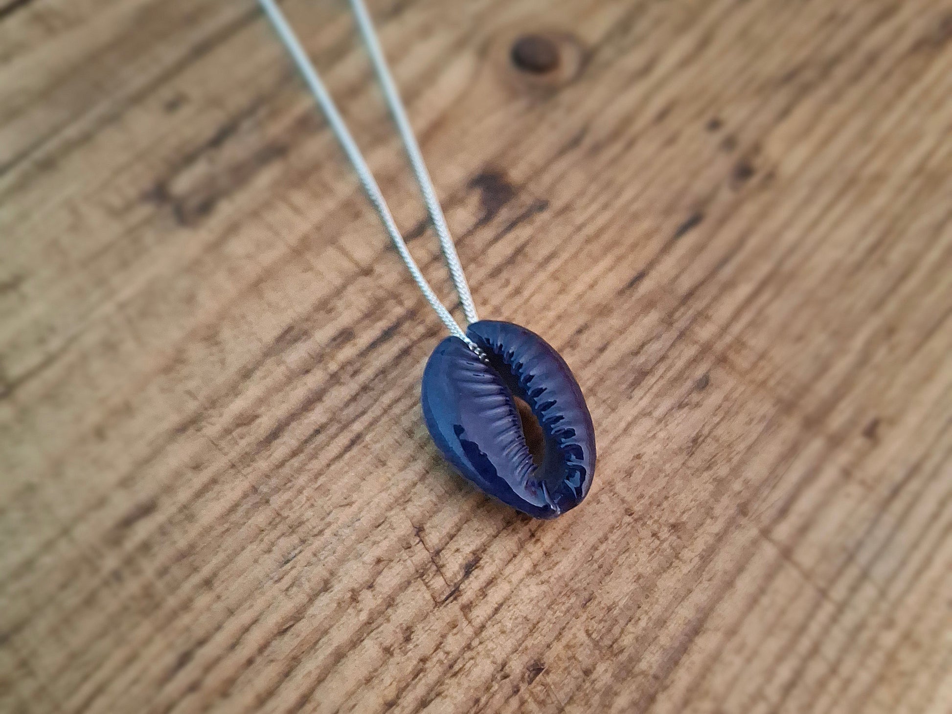 Simple Cowrie Shell Silver Necklace - Dark Blue