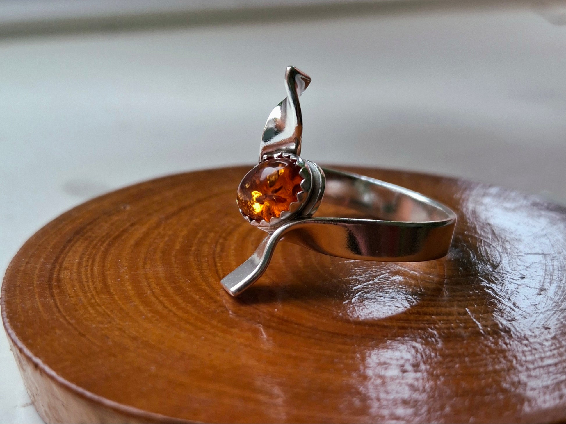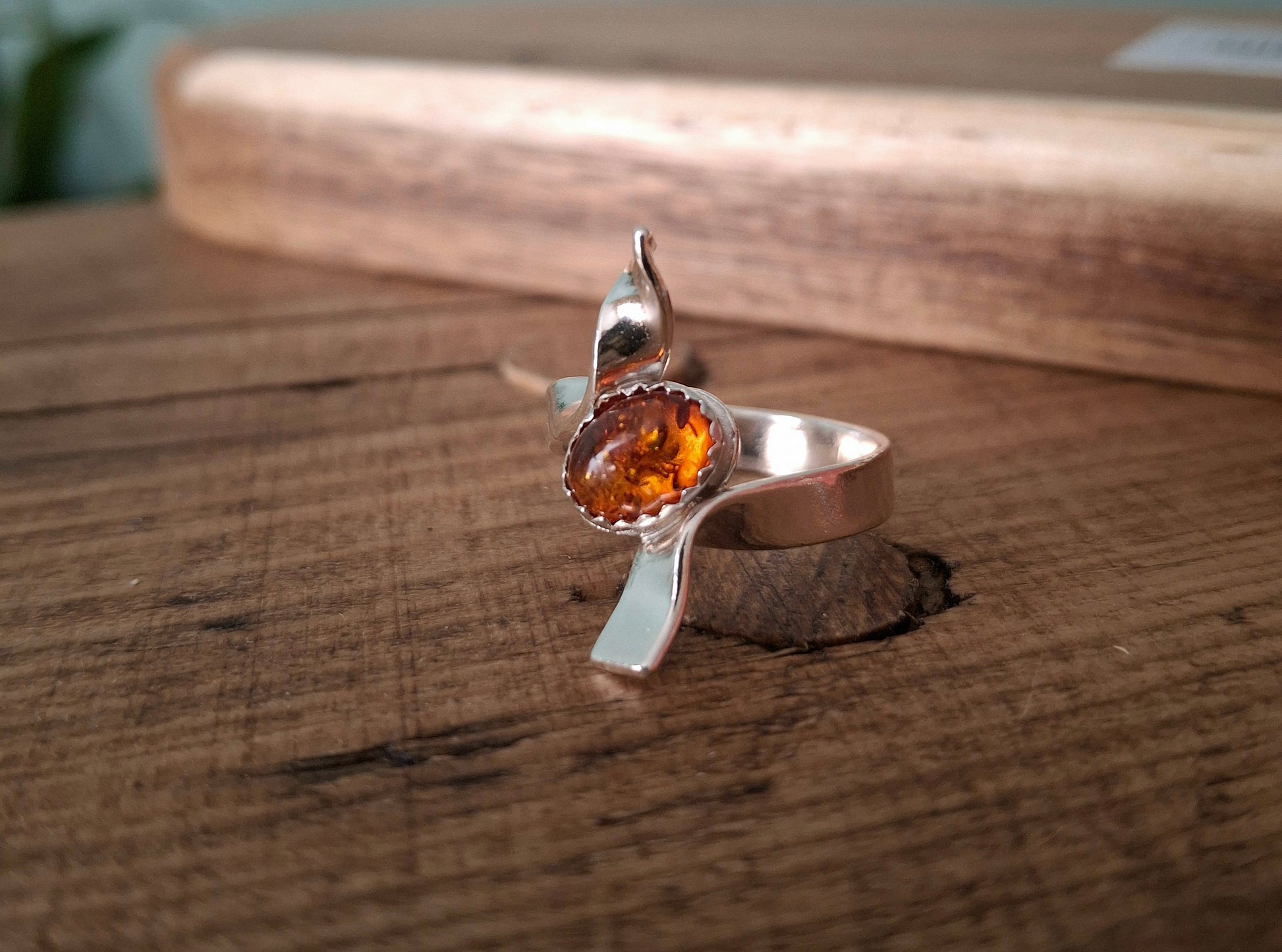 🧡 The ring has a UK size P ½, the amber is 6x8mm big.