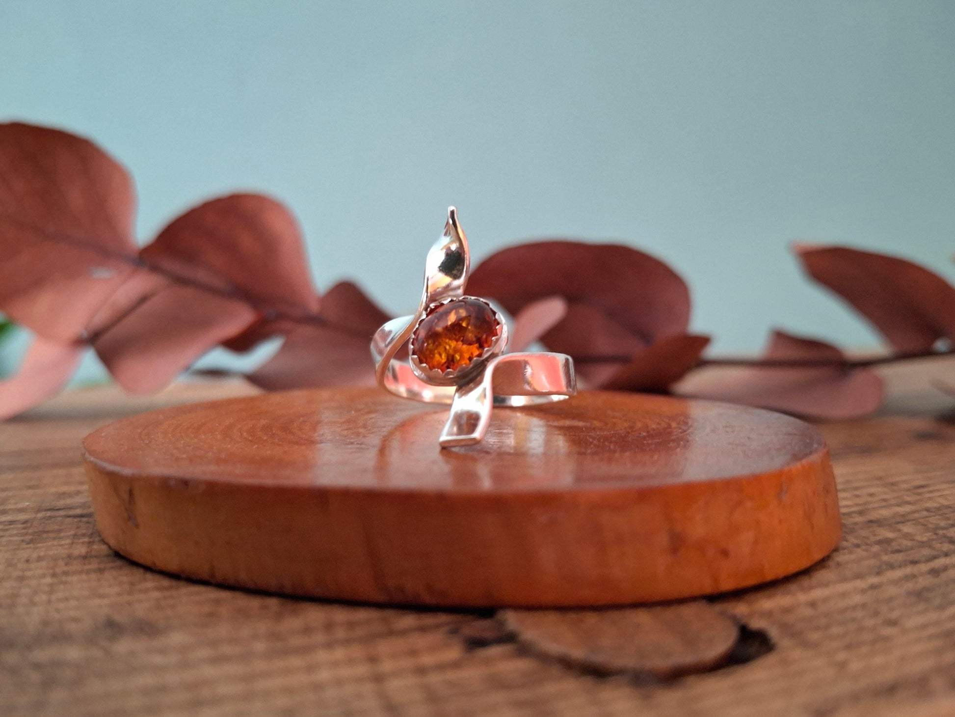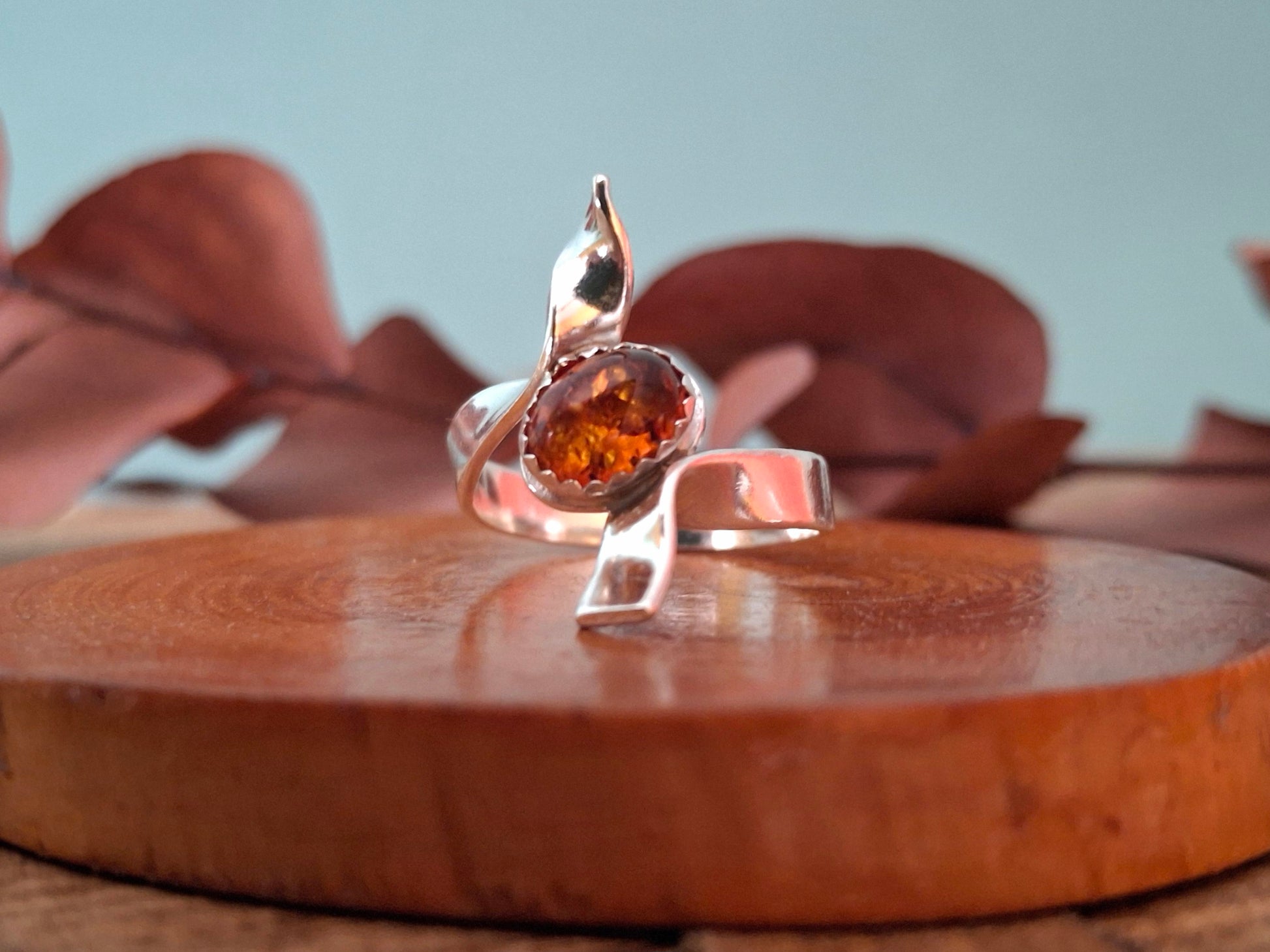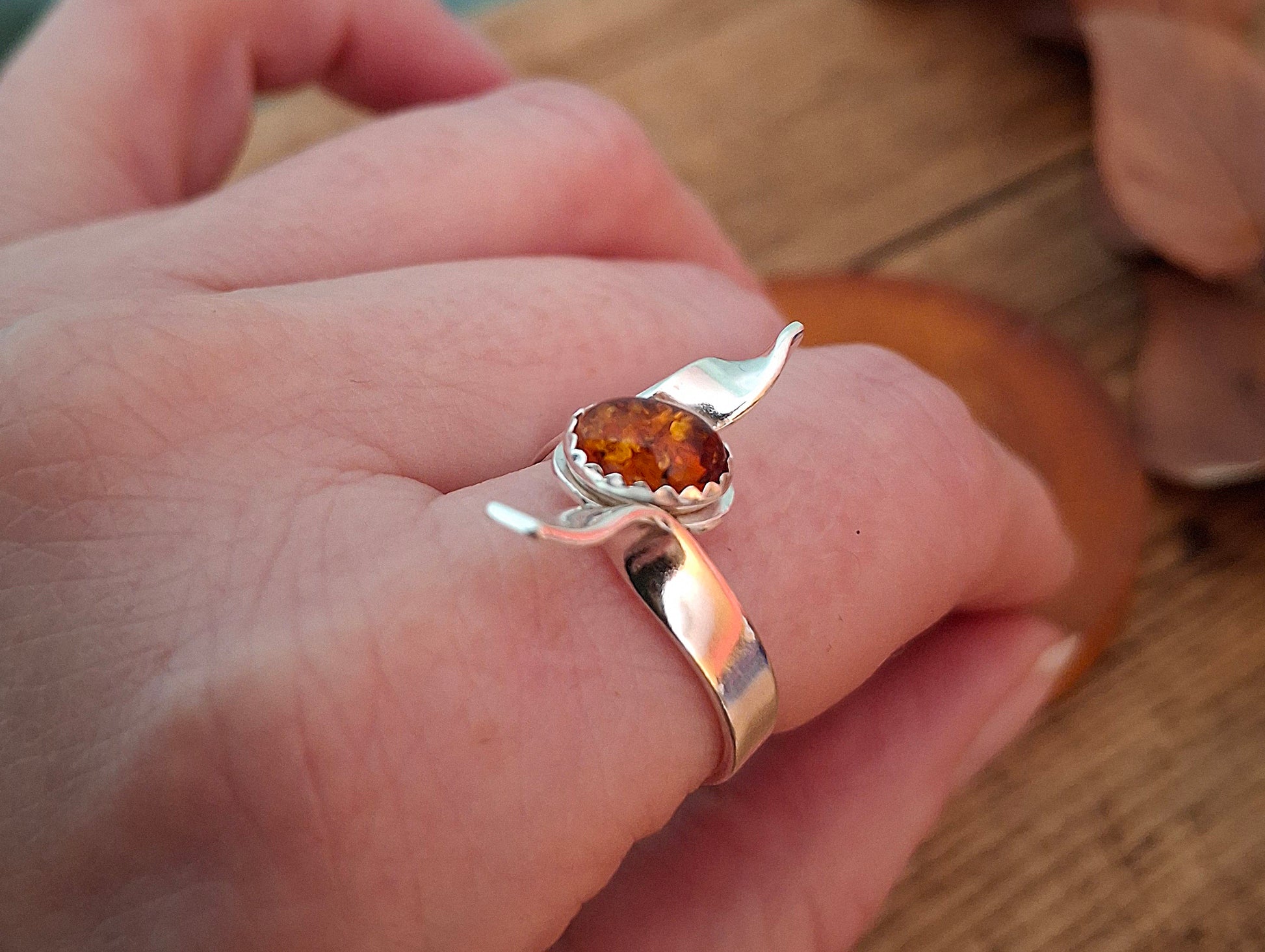 🧡 A flow of energy runs through this wavy amber ring that is elegant and charismatic at the same time.