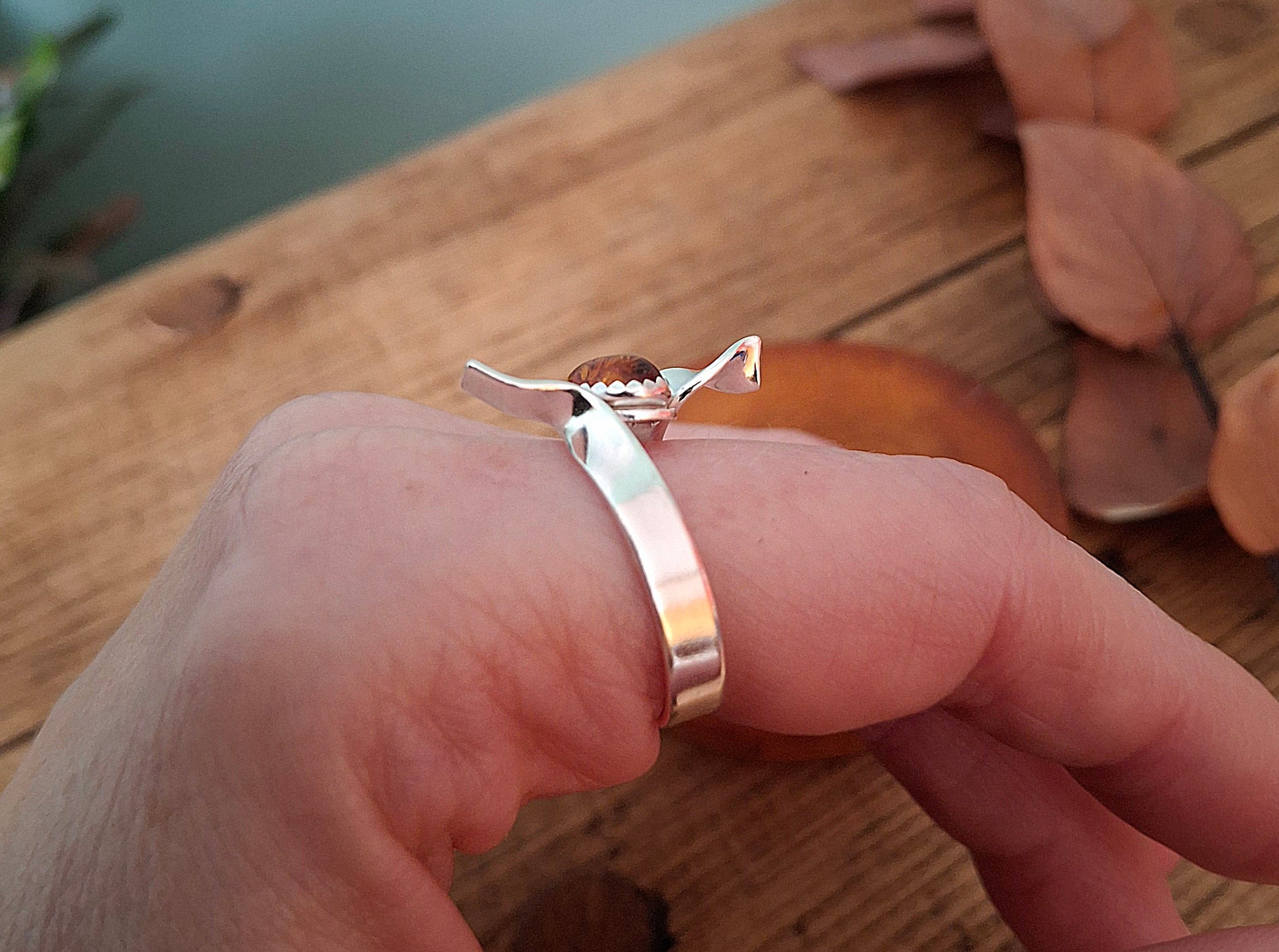 🧡 As always I have completely handcrafted this ring with Sterling and Fine Silver and a beautiful warm oval amber stone.